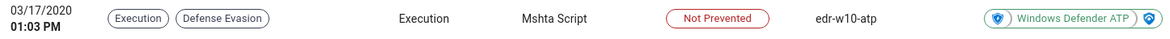 To finish this post, we will show an example of a detection of the Mshta Script scenario with Microsoft Defender ATP, and see how we can infer what the scenario has executed from the information provided by it.
