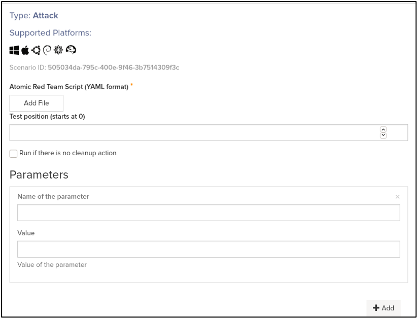 The only required element of this configuration is the Atomic Red Team YAML file itself. Go to the official Atomic Red Team GitHub repository and select one test of the many on offer. For this example, let’s use the technique OS Credential Dumping (T1003), sub-technique 008: /etc/passwd and /etc/shadow. Download the corresponding YAML file from the repository and upload it to the AttackIQ platform using the Add File button.