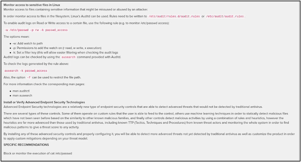 Figure 5 – Mitigation recommendations for access to sensitive files in Linux