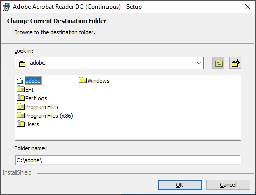We also changed the installation directory to C:\adobe, which can be created through the installer GUI.