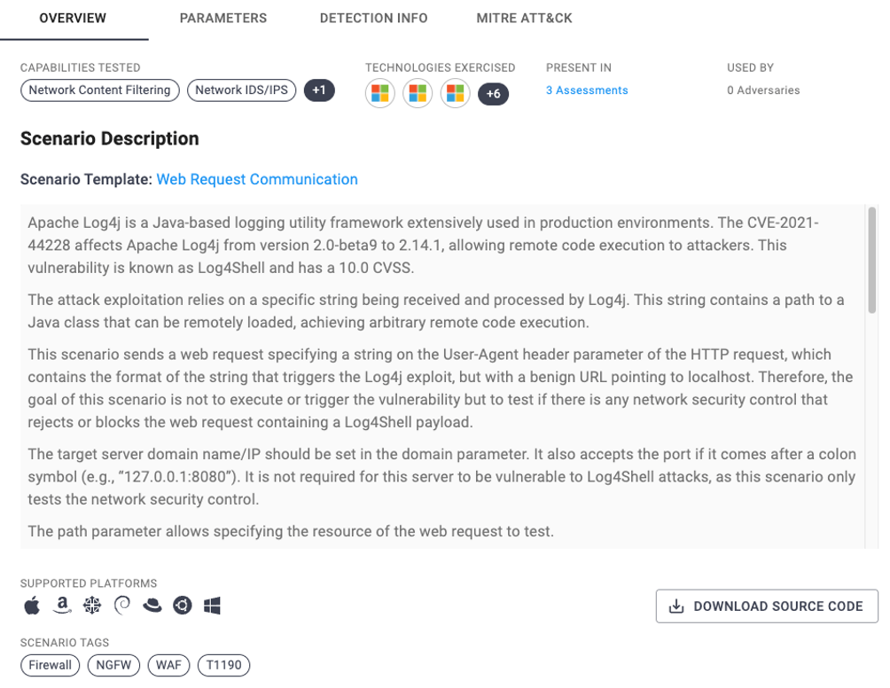 AttackIQ has multiple ways of testing post-compromise TTPs using the AttackIQ Security Optimization Platform and by replaying malicious traffic through the AttackIQ Network Control Validation module. In the days and weeks that follow this recent discovery, it is critical that you test and validate your security controls in production and see how they perform at scale. As numerous vendors apply patches to their own tools, you need to test your organisation for post-breach adversary behaviour regularly because Log4Shell can target both client and server infrastructure.