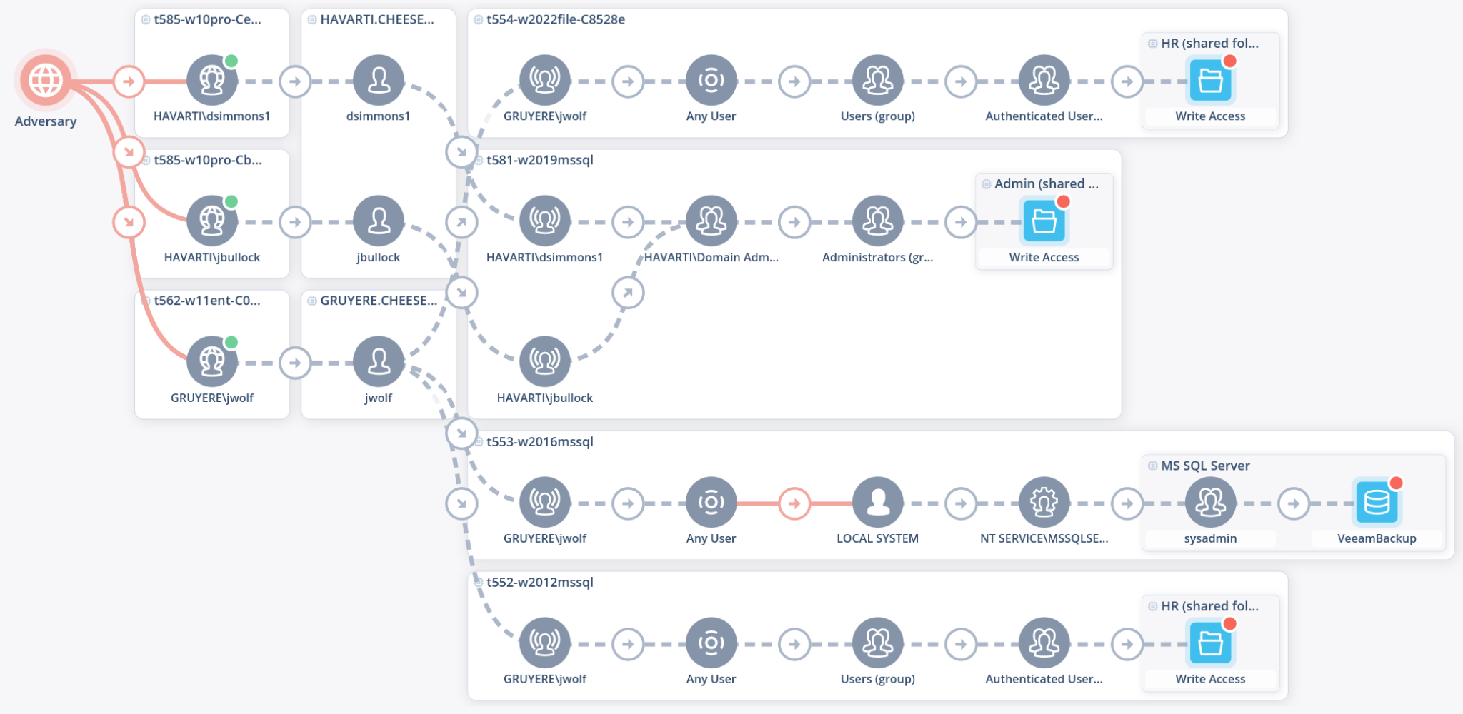 - Does getting increased access on this machine get the attacker closer with more access to a critical asset? Machines that get you closer, score higher; and machines with only very low access rights for users score lower.